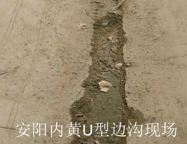 安陽農(nóng)村道路邊溝,18公分內(nèi)寬,24公分高的U型溝,混凝土厚度5公分。考察多個設(shè)備后最終采用小型公路邊溝滑模機。